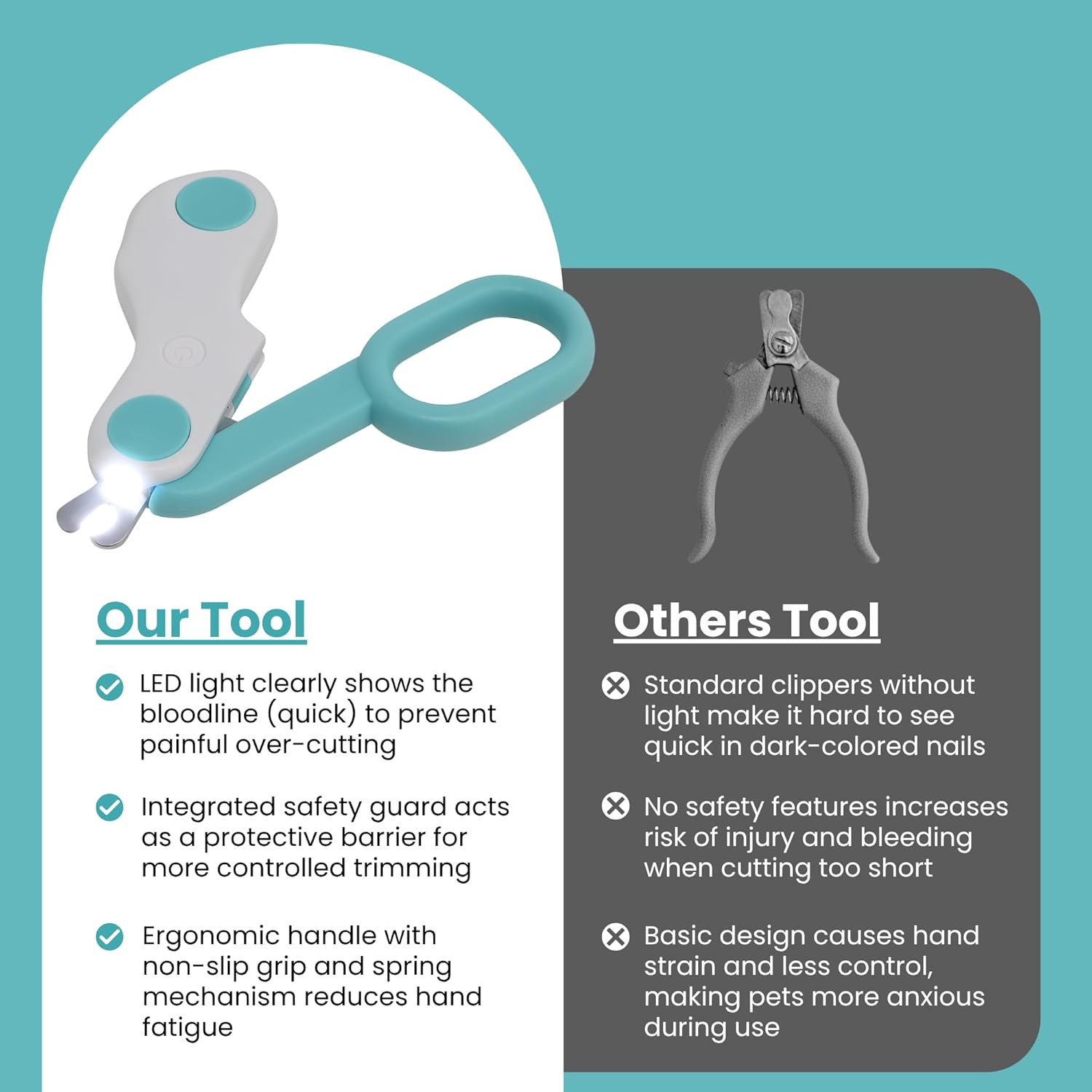 • LED GUIDED CLIPPER DESIGN: Designed with a built-in LED light positioned to illuminate the nail area, allowing clearer viewing during grooming sessions.
