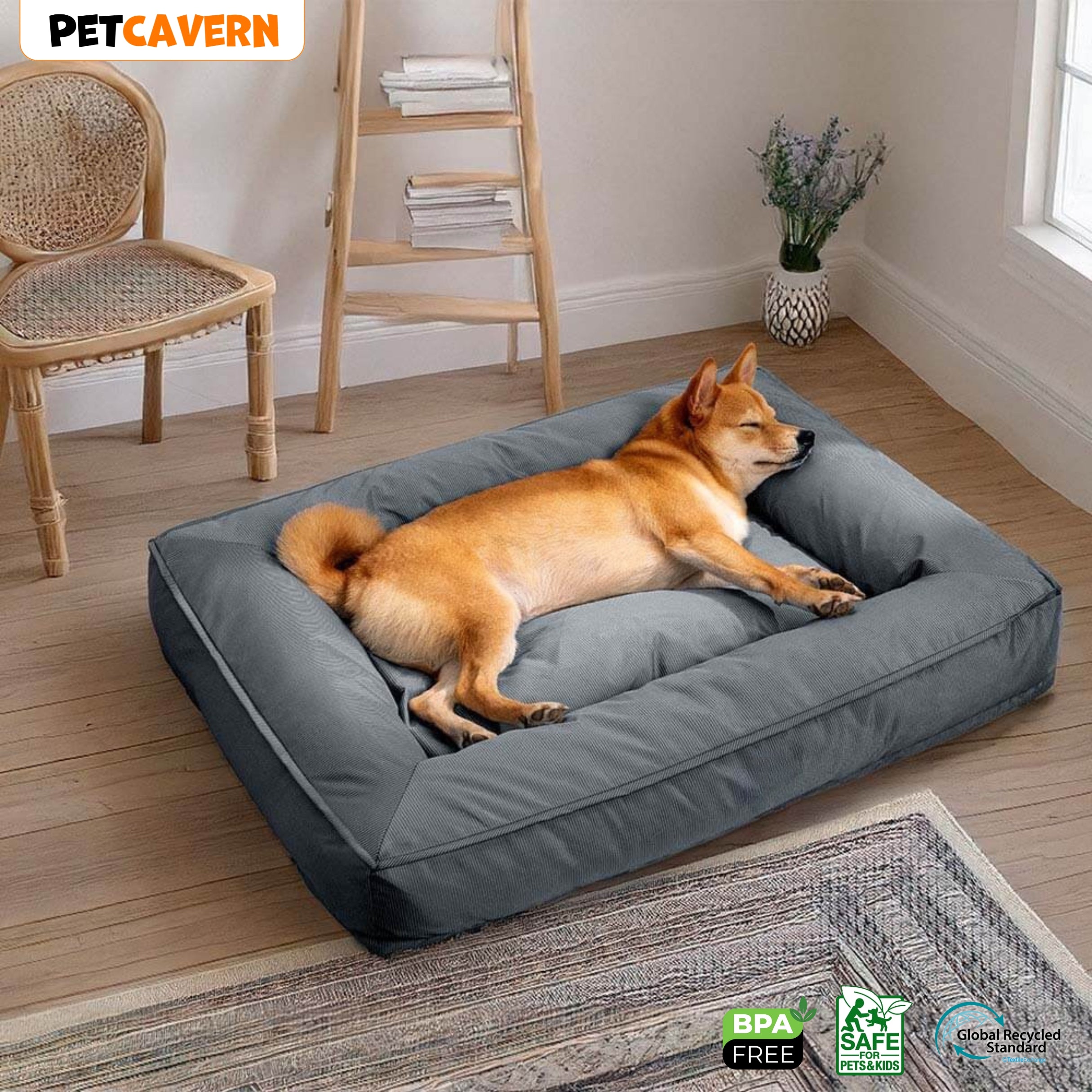Pet Cavern™ Fully Orthopaedic Surround Support Waterproof Fabric Anti-Anxiety Large Dog Bed